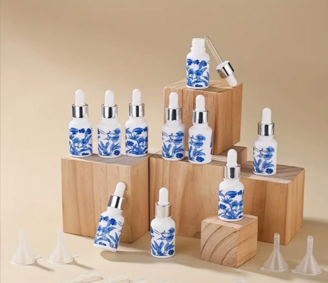 10 בקבוקים מקרמיקה לשמן ארומטי עם פיפטה 15 מ"ל